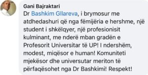 Profesori i njohur, Gani Bajraktari ka vlerësuar lartë kandidatin e PDK-së në zgjedhjet e 28 dhjetorit, Prof.ass.Dr. Bashkim Gllarevën.