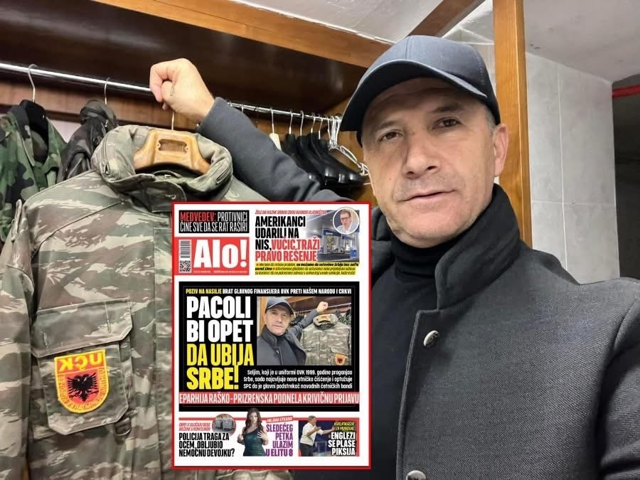 Së fundmi, gazeta nacionaliste serbe Alo, në një artikull të publikuar më 12 dhjetor, e ka vendosur në ballinë Pacollin. Me një titull hegjemonist, siç dinë atje të bëjnë, Alo e paraqet Pacollin me uniformën e UÇK-së dhe kinse ai “sërish do të vriste serbë”.